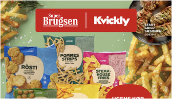 SuperBrugsen tilbyder et udvalg af dybfrosne Coop kartofler som Rösti, Pommes Strips, Steakhouse Fries, Kroketter og French Fries til kun 10 kr. pr. pose. Hver pose vejer mellem 450 og 1000 g. Tilbuddet gælder fra fredag den 24. april til torsdag den 30. april 2026.
